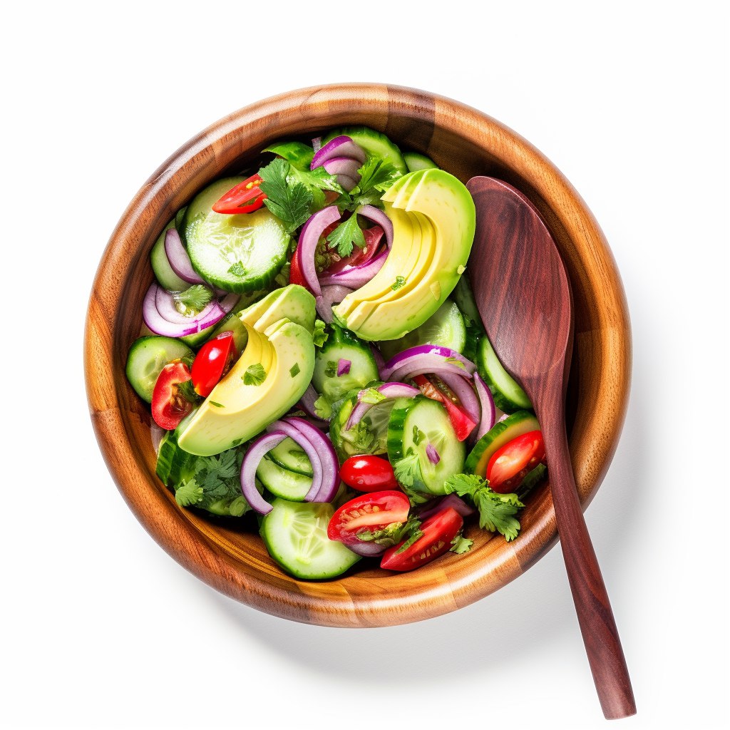 Выберите вариант, который соответствует вашей обстановке и создайте красочное и аппетитное блюдо салата с огурцами и авокадо.
