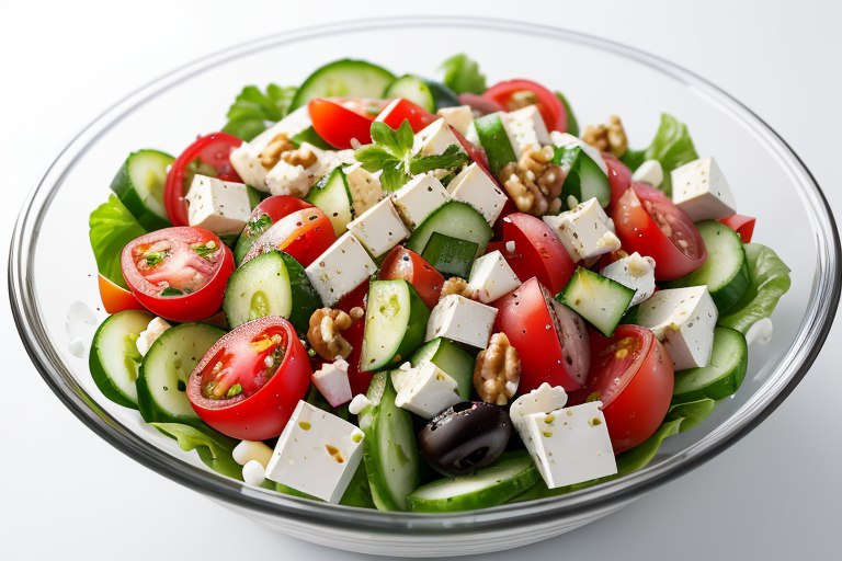 Сервировка салата может быть креативной и нарядной, чтобы визуально удовлетворить аппетит и сделать блюдо более привлекательным. Вот несколько вариантов сервировки греческого салата или любого другого салата: