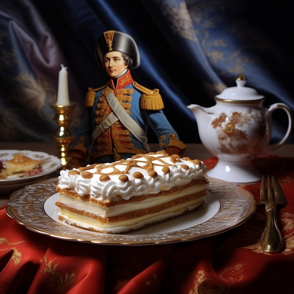 В 1912 году в честь столетнего юбилея победы советские повара приняли вызов создать десерт, который бы отражал величие победы и снова подчеркивал иронию времени. Решив взглянуть на историю через призму военной стратегии и кулинарного искусства, они придумали рецепт, который объединил бы славу великого победителя с элементами изысканности.
