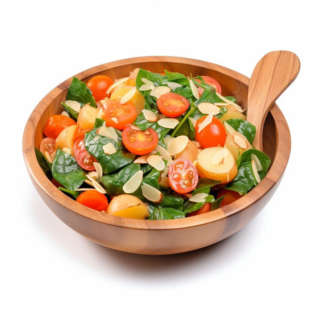 2. Богатство витаминами и минералами: В салате присутствуют овощи, такие как морковь и шпинат, которые богаты витаминами A и C, железом и фолиевой кислотой, способствующими поддержанию здоровья и иммунитета.