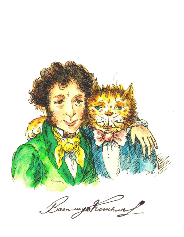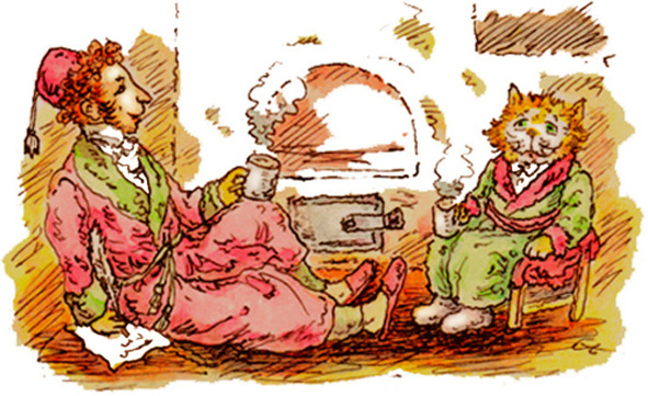 А однажды нарядился Кошкиным. Кошкин проснулся, думает, что зеркало пред ним, а это Пушкин наклонился да еще и мурлычет, прямо вылитый Кошкин! Просто совсем оборотень зеркальный! Да и говорит так, точно он самый Кошкин и есть: