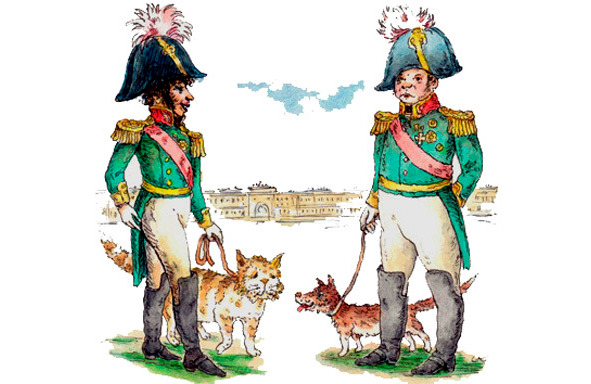 А как-то решил Пушкин себя царем нарядить, а Кошкина собачкой. Так и вышли они на Невский прогуляться, все равно как дамы обычно с собачками гуляют. А народ-то им тут прямо в ноги падает – дамы и господа поклонами да реверансами просто так и заваливают. Не каждый ведь день увидишь, как царь с собачкой прогуливается. Гуляли себе гуляли хотели уж назад, домой поворачивать, а тут навстречу вдруг настоящий царь с настоящей собачкой выступает. Ну и потеха! И бывает же такое!