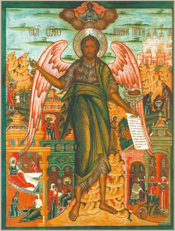 Св. Иоанн Предтеча изображаем был на древних иконах с двумя крылами ангельскими, для символизации духовной высоты жизни «из рожденных женами больша».