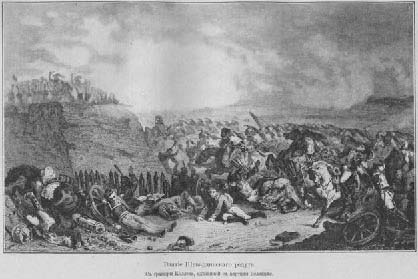 …С вечера уже началось; но это, говорят, только генеральная проба. Дабы лучше выяснить силы русских, Наполеон двинул через овраг колонны пехоты на Шевардинский редут. Пущей храбрости ради напоил еще допьяна солдат. И точно, пошли те храбро с барабанным боем.
