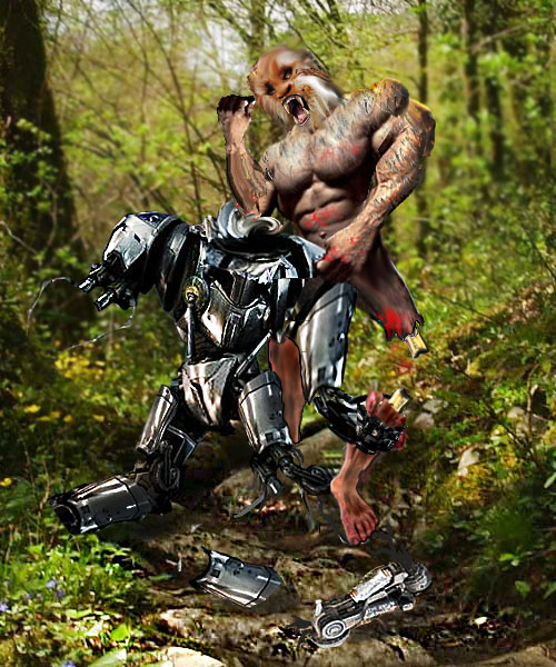 Освободившись от железной хватки, мутант опрокинул робота на землю, наступив ему на ногу, лапами ухватился за вторую и вывернул ее вбок, как лосю.