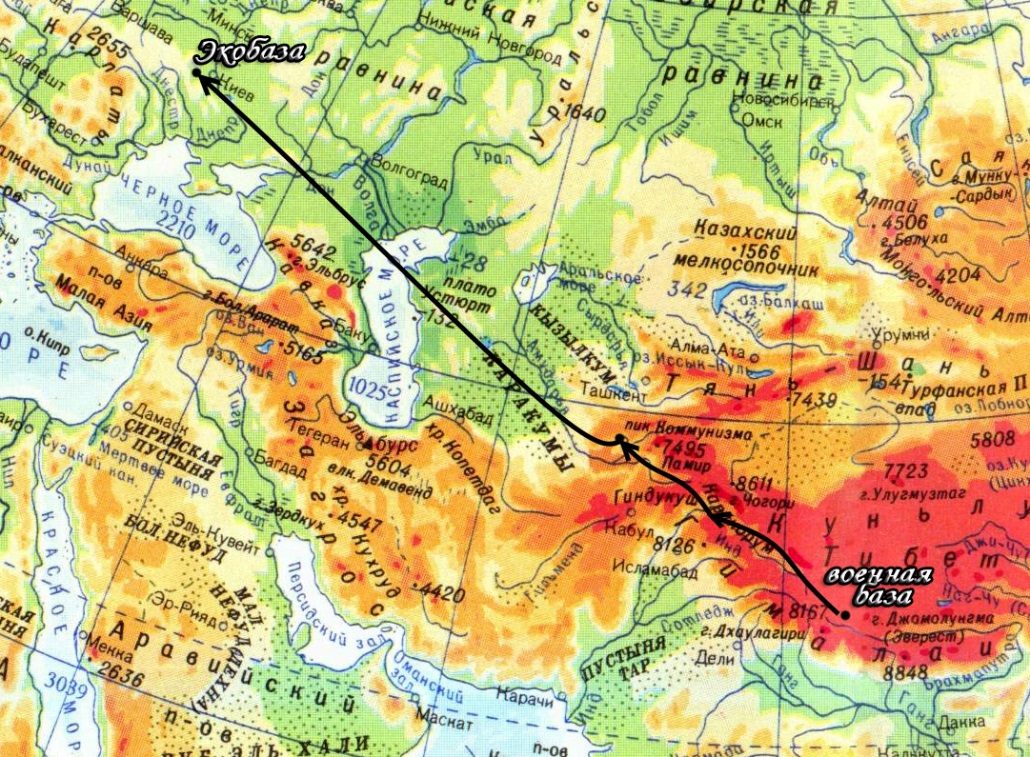 Весь день летели молча, погода испортилась, пошел мокрый снег, налипал на крылья. Пришлось подниматься вверх за облака. Вскоре покинули каньон, горы ушли на задний план. В разрывах облаков просматривалась земля, изменившая форму, цвет, природу. Горы с зелеными лесами и снеговыми шапками сменили желтые песчаные пустыни. Холод горных вершин сменился на жару. Систему кондиционирования не включали, приоткрыли немного задний люк.