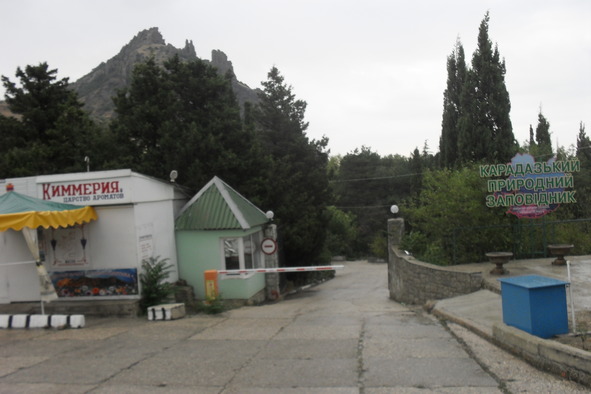 Добраться до этого поселка можно из той же Феодосии от центрального рынка на маршрутке, на которой прямо так и написано: Феодосия – … Биостанция. Да, именно так там и написано, а вам остается сесть, полюбоваться минут сорок пейзажами, выйти на конечной, и, уставившись на металлические ворота, с аркой и уходящей вниз асфальтовой дорожкой, поймать себя на мысли, что это уже где-то было. Дежа вю, друзья мои, дежа вю.