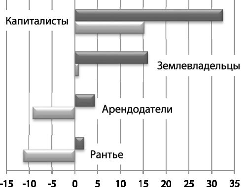 Интересы буржуазии определялись тем, что именно Капитал становился основной движущей силой экономического и общественного прогресса новой эпохи. Эту данность властно и непоколебимо подчеркивали различия в доходности капитала: в то время как доходы аристократических групп: рантье, землевладельцев, владельцев городских имуществ, снижались (большей частью просто проедались), доходы торгово-промышленной группы – наоборот демонстрировали уверенный рост (Гр. 1). Промышленный и торговый капитал становился основным двигателем экономического и социального развития России.