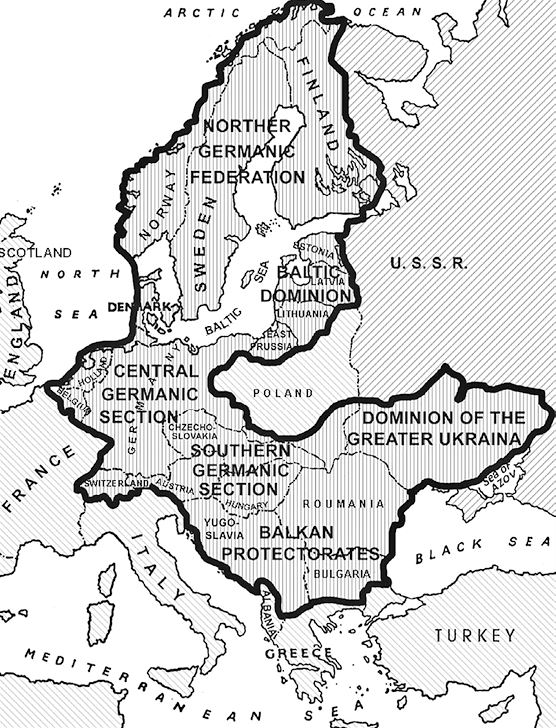 Первоосновы доктрины были изложены в 1927 г. в программной книге Розенберга «Будущий путь немецкой внешней политики»: «Германия предлагает Англии – в случае, если последняя обеспечит Германии прикрытие тыла на Западе и свободу рук на Востоке, – уничтожение антиколониализма и большевизма в Центральной Европе». Через несколько лет в книге «Кризис и новый порядок в Европе» Розенберг пояснял, что, по его мнению, все западноевропейские страны могут спокойно заниматься экспансией, не мешая друг другу. Англия займется своими старыми колониями, Франция – Центральной Африкой, Италия – Северной Африкой; Германии должна быть отдана на откуп Восточная и Юго-Восточная Европа[5]. В дальнейшем, по мысли Розенберга, влияние Германии должно было распространиться на Прибалтийские и Скандинавские страны. В результате, вместо пугавшей Англию Пан-Европы, в Европе должен был образоваться «Германский континентальный союз».
