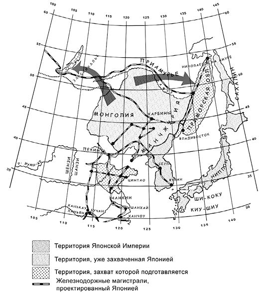 Согласно бюллетеню частной статистической и конъюнктурной организации Бабсона, озаглавленного «Япония будет воевать с Россией», война начнется по следующим причинам: «1. Японские аристократические правящие круги – смертельные враги коммунистов. 2. Японцы считают, что они получили недостаточно в результате русско-японской войны. 3. Японцам нужна часть Юго-Восточной Сибири и вся Маньчжурия для осуществления их планов. 4. Пока Россия слаба, это можно сделать. Настоящее время считается самым подходящим… «Но более важной из всех причин является факт, что Англия, Франция и другие крупные страны хотели бы видеть такую войну. Даже США могут простить Японии ее другие действия, если она нанесет этот удар коммунизму»[78].
