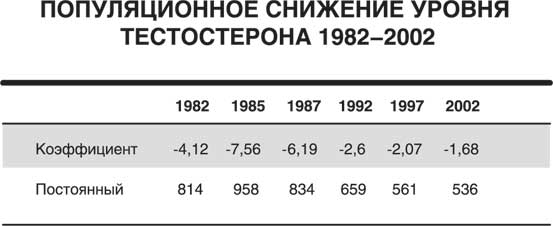 Известно, что метаболическое и функциональное состояние организма во многом контролируется гормонами. Сравнительные исследования гормонального статуса здоровых мужчин показывают, что в начале 1980-х годов средний уровень тестостерона составлял 814 нг/дл, а в 2002 году – 536 нг/дл.