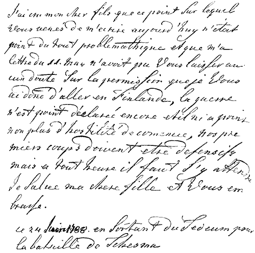 Факсимиле письма Екатерины II к великому князю Павлу Петровичу, написанного по-французски