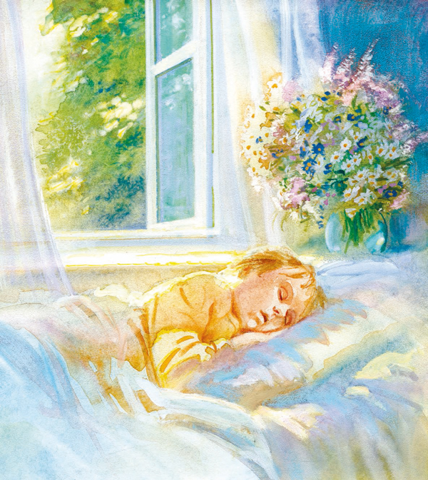 Пятый луч попал в детскую, на постельку к маленькому лентяю: режет ему прямо в глаза, а он повернулся на другой бок и опять заснул.