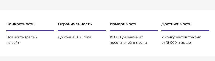 Цель должна быть понятной, ограниченной по времени, измеримой и достижимой.