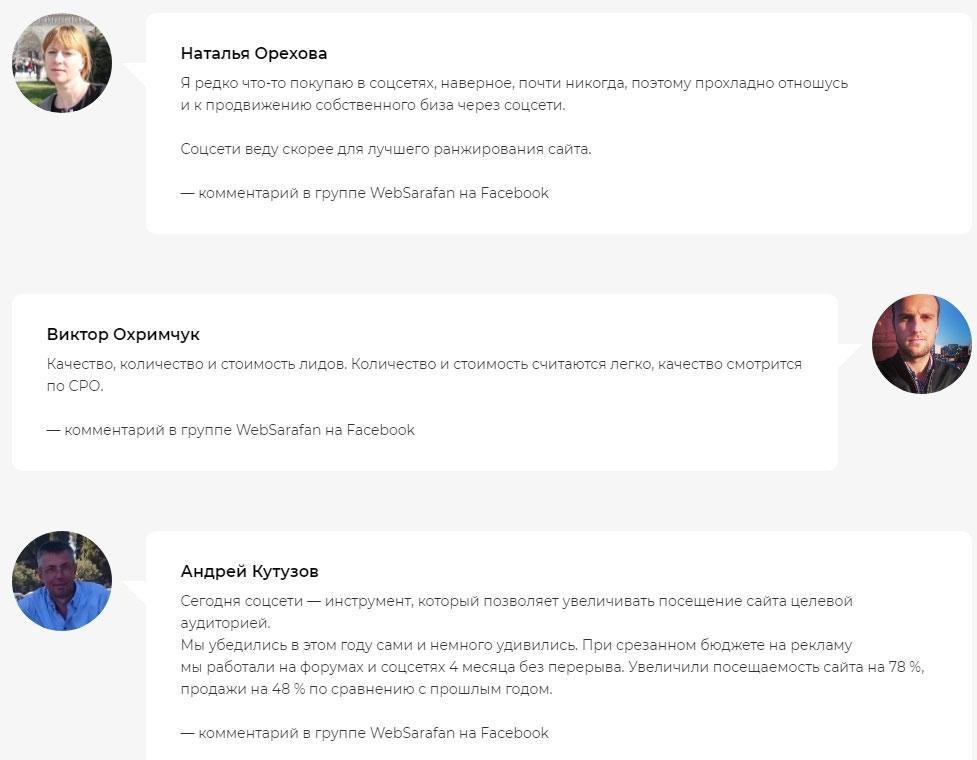 Мы попросили поделиться мыслями собственников бизнеса в группе WebSarafan на Фейсбуке* и получила следующие ответы: