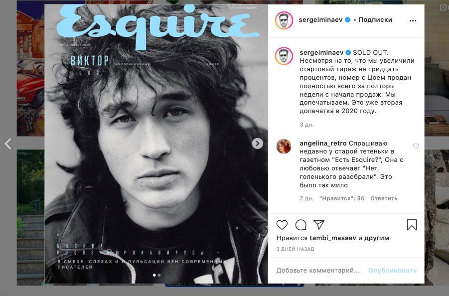В личном аккаунте главного редактора журнала Esquire Сергея Минаева не только прокачивается личный бренд профессионала, но есть и работа с ядром аудитории издания