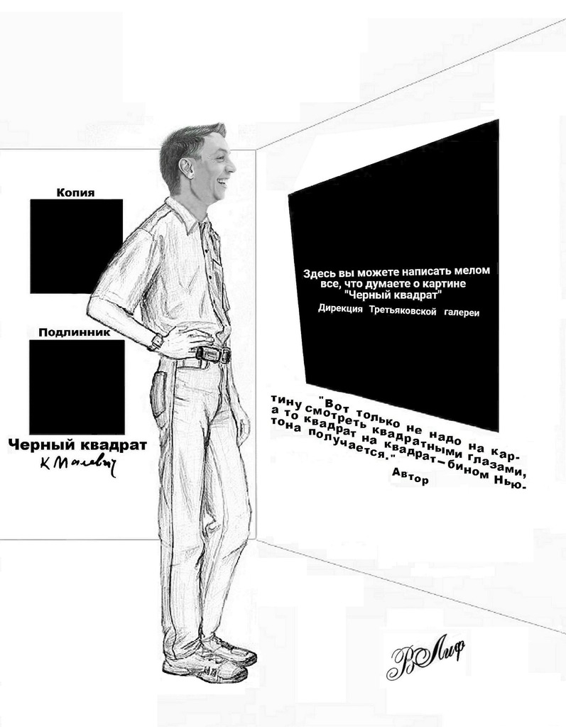 Рискну предположить, что если бы эту картину увидел Шекспир, то он бы возмутился: «Кто это сделал, лорды? …Его величеству не по себе!» («Макбет»). А Илья Ефимович, придя в Третьяковку, по мнению А. В., воскликнул бы: «Не ждали Репина, а Репин не ждал, чтобы так его не ждали…» – и тут же Репин кинул бомбу… в «Черный квадрат» (см. «Стихи.ру»).
