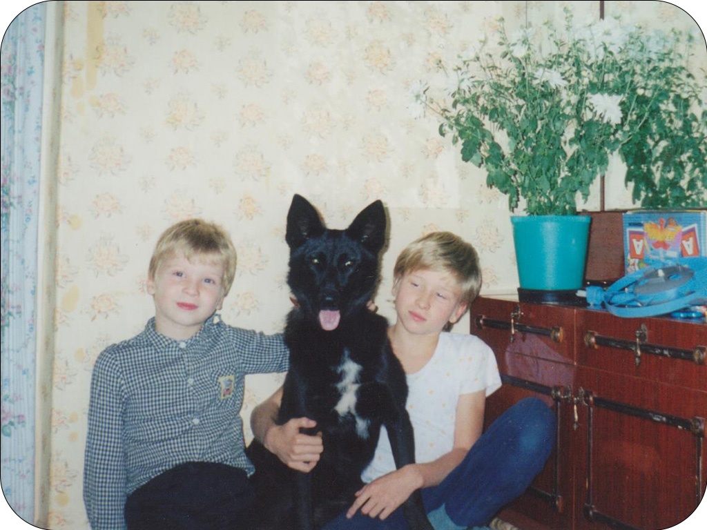 В нашей семье первый фотоаппарат появился незадолго до «изгнания» Шурика. Не помню число и месяц, но точно помню, что была весна 97 года. Это было настоящее чудо! Мы могли фотографировать сами, и частым объектом нашего внимания, конечно, был Шурик. Помню как будто сейчас, какой шок был у Шурика после первой фотографии. Мы с братом сели в зале на пол к стене смежной с родительской спальней, так что свет из окна падал прямо на нас. Шурика мы усадили между нами и оба обняли его.