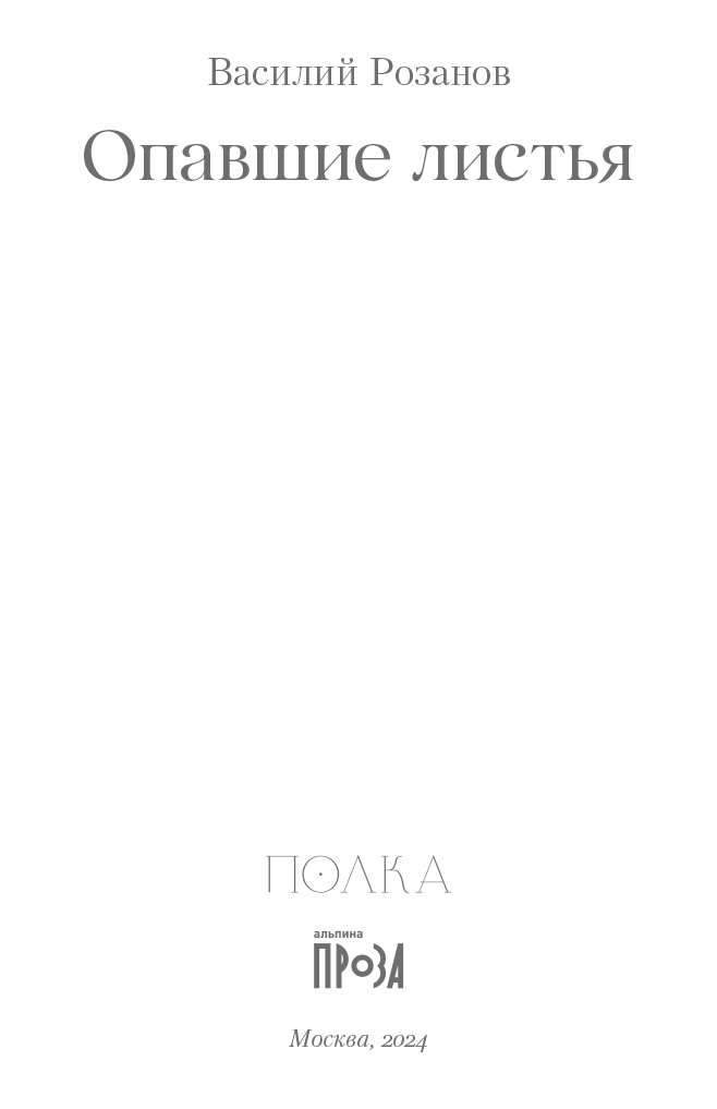 КОГДА ОНА НАПИСАНА?Тексты, составившие «Опавшие листья», Розанов написал в 1912 году. На их содержание и интонацию повлияли события личной жизни писателя: ухудшающееся после паралича здоровье его фактической жены Варвары Бутягиной, смерть ее матери Александры Рудневой, с которой Розанов был очень близок, опасная болезнь приемной дочери Саши. В этот же год Розанов ходит в окружной суд, пытаясь отстоять арестованный тираж «Уединенного» – своей первой книги в исповедально-дневниковом стиле, откровенность которой повлекла за собой обвинения в порнографии и разгромные отзывы критиков.