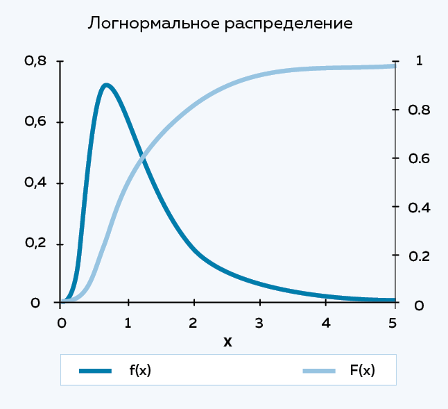 Секрет 5. Контролируем на ранних этапах, позже – доверяем!Посмотрите на график функции логнормального распределения (синяя линия).