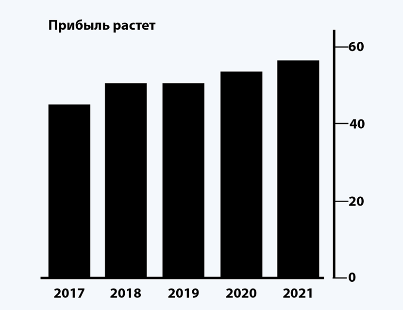 А вот этот график явно намерен увести нашу мысль куда-то не туда. Во-первых, перевернута горизонтальная шкала, и график мы должны читать справа налево, во‐вторых, перспектива здесь визуально слишком сильно выделяет 2021-й год.