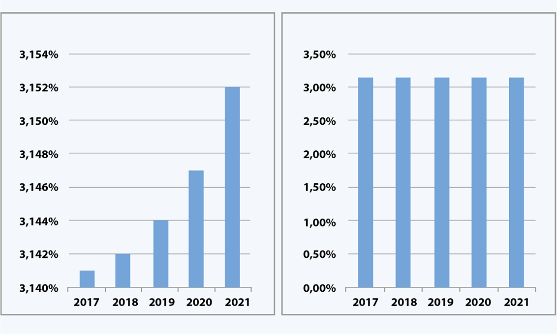 На самом деле здесь показаны одни и те же данные, но на графике слева ось начинается не от нуля, а значит, динамика видна куда более четко. На графике же справа ось начинается от нуля, и разницы в данных мы не видим.