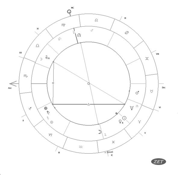 Венера, конечно, была еще в 4 доме, но отставала от куспида 5 всего лишь на 3 градуса, а по правилам «5 градусов», о которых еще писал выдающийся Бен Эзра в «Книге суждений о звездах», или кто-то другой, Василий не мог вспомнить, но смысл в том, что планета не просто видит на 5 градусов вперед, а как бы физически уже там находится, и следовательно, можно считать эту Афродиту в 5 радикальном доме, хотя по карте она еще в 4.