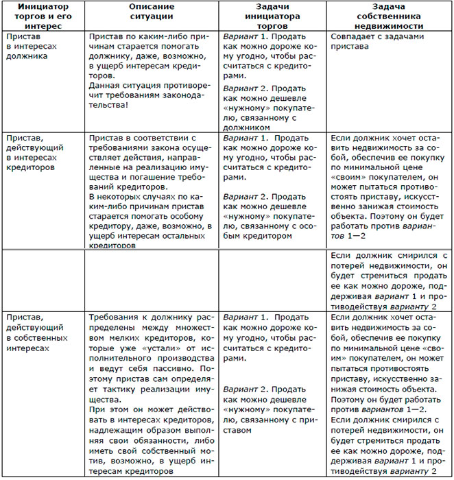 Таблица 2.2. Продажа имущества в ходе исполнительного производства. Возможные интересы сторон