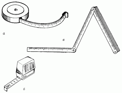 Рис. 1. Контрольно-измерительные инструменты: а, б – виды рулеток; в – складной метр.