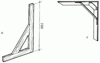 Рис. 2. Контрольно-измерительные инструменты: а – деревянный угольник; б – металлический угольник.