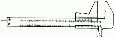 Применяется для измерения величины деталей. Для этого сторона детали помещается между штангой и рамкой, верхний ус будет показывать размер измеряемого расстояния.