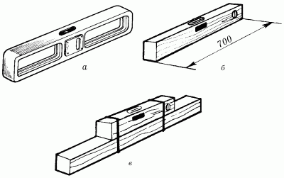 Рис. 4. Виды уровней: а – металлический; б, в – деревянные.