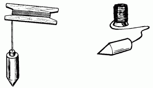 Он состоит из шнура и цилиндрообразного грузила 15 мм в диаметре, весом 150–200 г. При использовании отвеса нужно проверить, как крепко шнур привязан к грузилу, и только если он прикреплен хорошо, стоит приступать к работе.