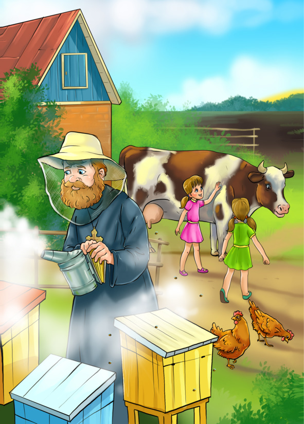 Было у попа ещё два сына-подростка, шестнадцати и семнадцати лет. У них тоже было много обязанностей: пахать на участке около дома, сеять на нём помидоры, огурцы, кукурузу, подсолнечник, картошку, капусту, клубнику, растения для пчёл – медоносы, а также собирать урожай и бережно относить его в подвал, на хранение. Было у попа около дома ещё три сада: старый сад из одних антоновок; средний сад, в котором росли молодые деревья – груши, яблоки, сливы, вишня; и молодой сад, где росла малина, чёрная и белая смородина, розы и цветы-медоносы. Среди кустов стояло восемнадцать ульев. За сады отвечали братья. А пчёлами поп занимался сам. Откачивал мёд он на медогонке. Мёду у него было много. А зимой попадья выгодно продавала излишки на базаре в соседнем посёлке.