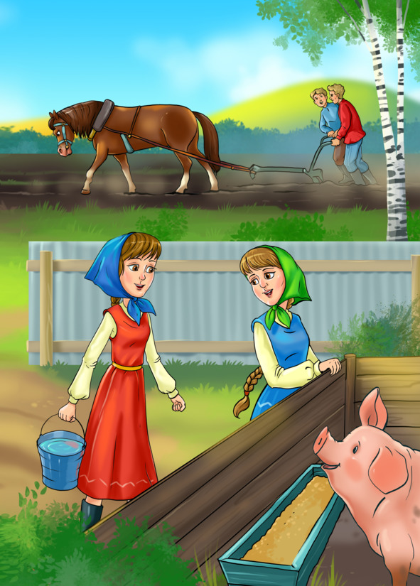 Хозяйство попа увеличивалось. И требовал он от членов своей семьи выполнения порученных им дел. Никто из них не сидел без дела. А семья у попа была большая. Его попадья целыми днями варила пищу батракам на удалённых участках. Остальные не ленились, с утра до вечера трудились. Трудные дела были у четырёх его дочерей. Все четыре дочки были красоты неописуемой, неслыханной. Одной было восемнадцать, другой девятнадцать, а две другие были одногодками по двадцать лет. Но несмотря на их красоту и молодость, поп не давал им спуску в труде. Главным их делом был уход за скотиной. На их попечении было три коровы, четыре лошади, десять коз, пять свиней и много кур. Сколько кур – сосчитать было трудно, так как они всё время перемещались. Неслись не только в курятнике, но и в огороде, под крыльцом дома, в саду. Рано утром по росе уходило с многоголосым мычанием на пастбище стадо коров. Сестрицы выгоняли в это стадо своих трёх коров, подоив их перед этим. Затем выгоняли коз на участки с сочной травой и привязывали их к колышкам так, чтобы они не мешали друг другу. Сыпали пшено курам. Кормили и поили свиней. Поп был недоволен, когда свиньи начинали повизгивать от голода, и ругал за это дочек. Потом девочки запрягали в подводы двух коней и мчались на заливной луг недалеко от их дома. Там они жали траву скотине на вечер. Нужно было варить похлёбку свиньям, доить коз и коров вечером. Дела у них кончались только с наступлением сумерек. Усталые, они ужинали и ложились спать. А рано утром трудовой день начинался вновь.