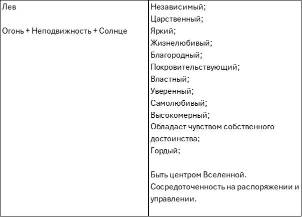 Активный принцип – первый элемент активного принципа: Огонь – второе качество Огня: Стабильность – Лев