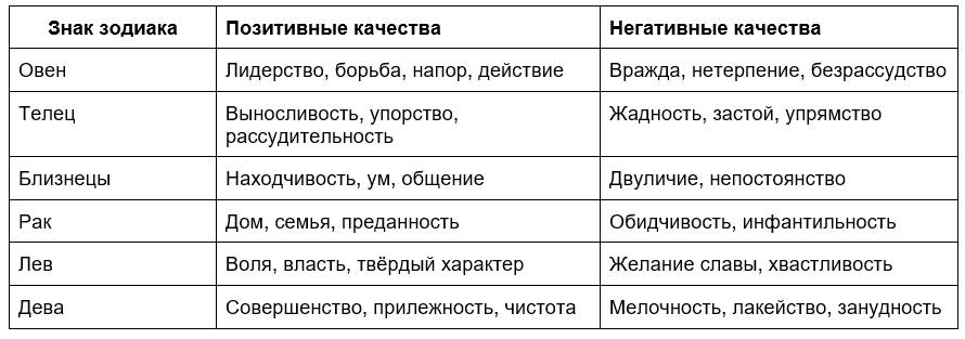 Качества знаков зодиака
