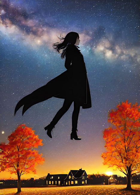 «Скоро восемь. Надо поторопиться», – только успела подумать она, когда в предрассветной темноте увидела огромную стаю чёрных птиц. Велеслава замерла, наблюдая завораживающую воображение картину. Пернатые метались в пространстве, образуя причудливые двигающиеся сюжеты. Творческая фантазия рисовала силуэт женщины-великана с хвостом птицы. Гигантский профиль человека будто завис над поверхностью земли, обращаясь ликом в сторону восхода солнца.