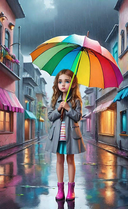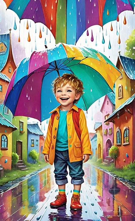 Весь народ от мала до велика был взбудоражен неожиданной вестью. Напуган видом необычного разноцветного зонтика, пробуждающего в душе неведомое доселе, волнующее сердце чувство радости, до неузнаваемости меняющее лица и преображающее жителей города Дождя восторженными улыбками.