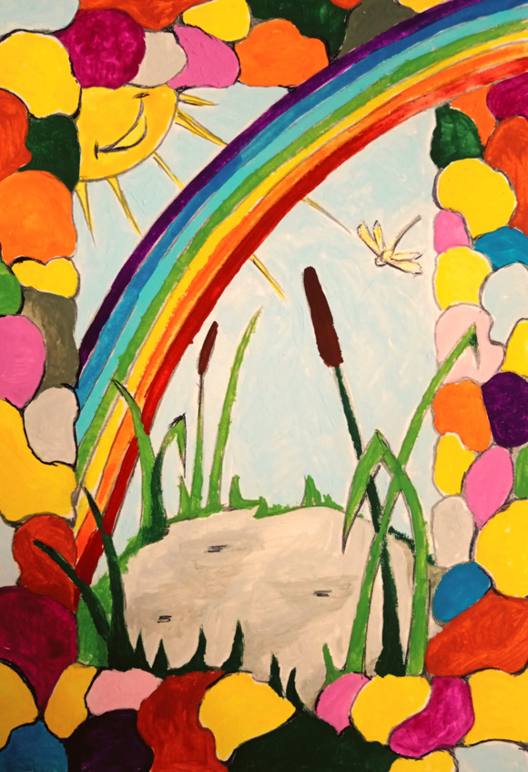 Цвет пятый разольётся – голубой,Вдогонку синий, он – шестой,Седьмой уже идёт за всеми,Он выждал себе время это,И радуга в разгаре летаВсегда покрыта фиолетом.И радуга сияет ярче,Когда насыщен каждый цвет,И в этом радуги секрет!Умница!Тобою нарисована радуга!У тебя здорово получилось,Порадуйся на результат,Пейзажа жанр всегда прекрасен,Природою своей богат!Теперь возьми краски зелёной на кистьИ штрихами рисуй, не ленись, траву,Вытяни в высоту длинный стебель и лист,Потом синий бутон на стебле чтоб повис,К нему солнечный луч,Пусть подарит тепла ему летом,Напитается он фиолетомИ допустит к себе Наяду.Наяда села на лист цветка и притихла.Тихо, тихо, притихни и ты,В тишине нарисуй тихий прудИ спокойную рябь, камыши…Незаметно смотри, не спеши,Не дыши, не спугни,Наблюдая, рисуй всеми краскамиДень рождения стрекозы!Пусть этот день будет ярок,Как самый лучший жизни подарок,Радуга отразится в пруду,Вода прыснет лейкой на луг,И каждый друг стрекозе соберёт букет,И с цветами спешит на банкет!Вот и лопнул Наяды чехол,И новая особь,Профиль – анфас,Головой покрутила,Фасетками глаз появляясь на свет,Посмотрела на нас стрекоза,Вздернула носик, горда,Губы словно шепталиЕё отражая настрой:Вот и пришла пораВ день рожденья мой!