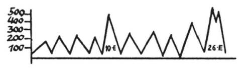 Сказать ли вам, что это были за графики? Ну, это очень просто: на веленевой бумаге, черной тушью, рисуются две оси – одна ось горизонтальная, другая вертикальная. На горизонтальной откладываются последовательно все рабочие дни истекшего месяца, а на вертикальной – количество выпитых граммов, в пересчете на чистый алкоголь. Учитывалось, конечно, только выпитое на производстве и до него, поскольку выпитое вечером – величина для всех более или менее постоянная и для серьезного исследователя не может представить интереса.