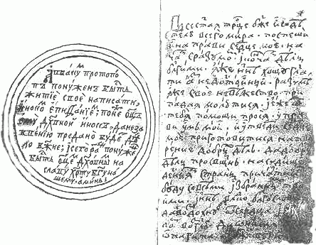 Автограф Жития протопопа Аввакума с припиской в круглой рамке старца Епифания