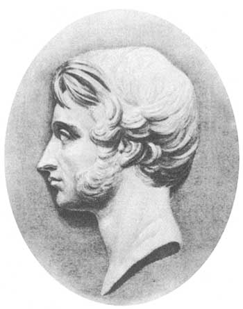 Адам Мицкевич. Гравюра А. Олещинского по медальону Давида д’Анже. 1829.