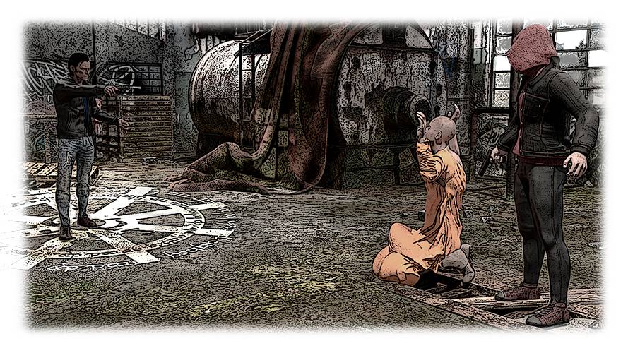 В заброшенном помещении, на какой-то окраине Индии, находились четыре человека в чёрных кожаных куртках. У всех короткая стрижка, а у некоторых на лице шрамы. С виду – вылитые бандиты. Здесь также присутствовал испуганный пожилой монах со смуглым лицом, в желтом одеянии и стрижкой под «ёжик». Он из раза в раз повторял свои мантры перед кругом изгнания демонов, в котором находился сам Евгений.