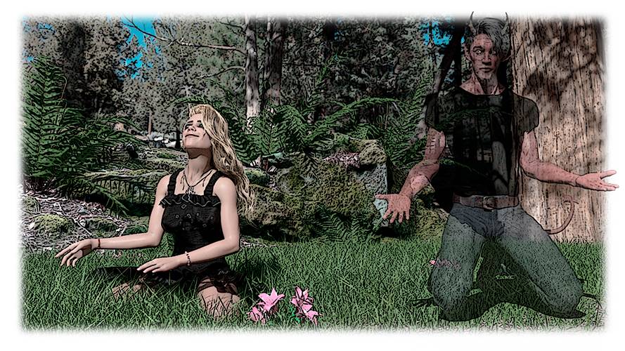 После моих слов она изумлённо обхватила свою грудь, а потом начала ощупывать себя всю. Сев на колени и поджав под себя ноги, стала осматриваться. Только вот я заметил необычные листья деревьев и странные маленькие цветочки жёлтого цвета, имеющие конусную форму бутона. Я, конечно, не ботаник… но таких цветочков на Земле я не припомню. Уж сильно они примечательные…