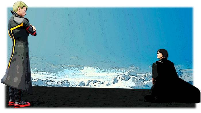 Приподнявшись, я увидел человека, что сидел спиной ко мне, в чёрном плаще с капюшоном. Мы находились на какой-то чёрной матовой платформе, словно из композитного нейлона.