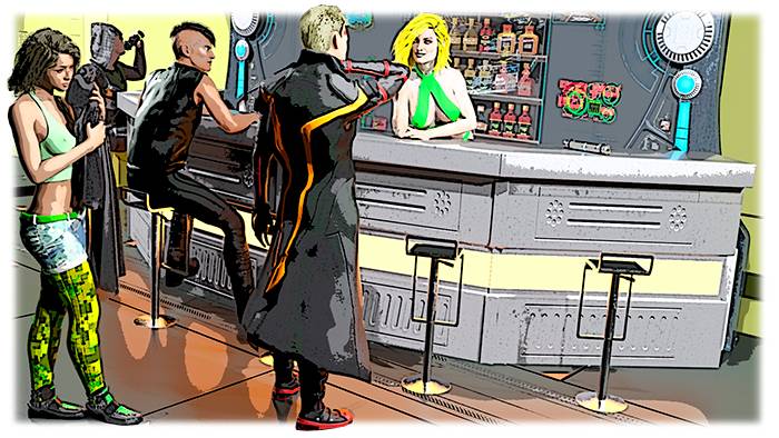 Над крыльцом горела неоновым зеленоватым цветом надпись «The Traveler’s Hostel». И слово «путешественник» здесь видно было не просто так. Людей было здесь много! Самых различных людей! Много тёток в совершенно разных нарядах, дядек различных комплекций и каким-либо набором имплантов. После моей базы, интерната и бункера я словно попал в Москву, Токио или Нью-Йорк! Вживую я такого ещё не видел.