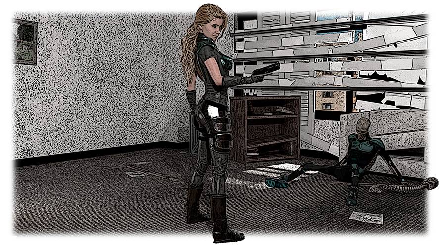 Я тут же схватил пистолет, что был в руке мужчины, и начал вертеть его в руках, щёлкая курком, но признаков жизни он не подавал. Привычную обойму с патронами я тоже не обнаружил. Но заметил с тыльной стороны рукояти ползунок, и с усилием потянул его вниз. Из того места, где должен быть магазин, сразу выщелкнул какой-то цилиндр. Подняв его с пола, я пригляделся и узнал в нём батарейку, что лежит в борсетке на бедре. Вставил предположительный боезапас в рукоять, и на месте, где должен быть боёк пистолета, тут же засветился маленький огонёк. Затем загорелся небольшой экранчик на левой стороне пистолета, а следом начали подсвечиваться рожки прицела.