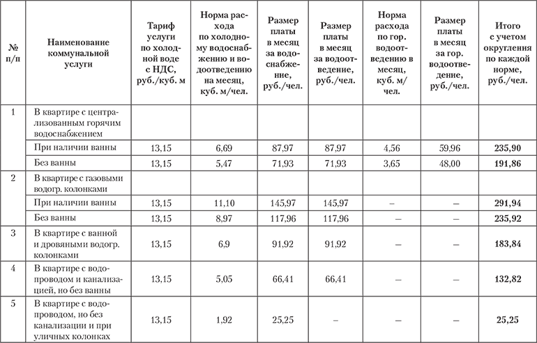 Стоимость холодной воды в месяц на 2010 г. для квартир с различным оборудованием приведена в табл. 3.1.