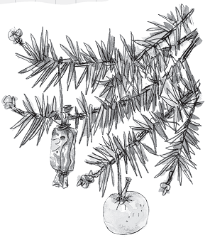 И я подхожу к елке и откусываю маленький кусочек яблока.
